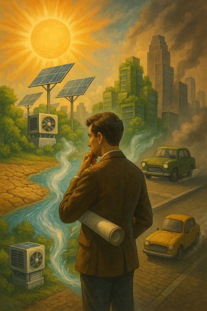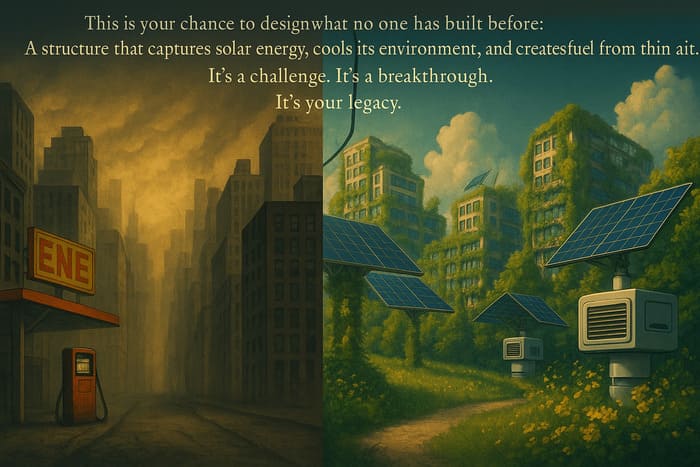 And yes — the sun plays a role.But only because we didn’t let it work differently.The sun gives us energy.And we still have a chance to make that energy work —not for destruction, but for restoration.We can harvest it.We can cool the city.We can bring back water. And we can create clean, carbon-neutral fuel from the air —fuel that cities can use to power homes, vehicles, and entire districts.Not fossil fuel. Not imported fuel. Fuel made from sunlight, CO₂, and water.