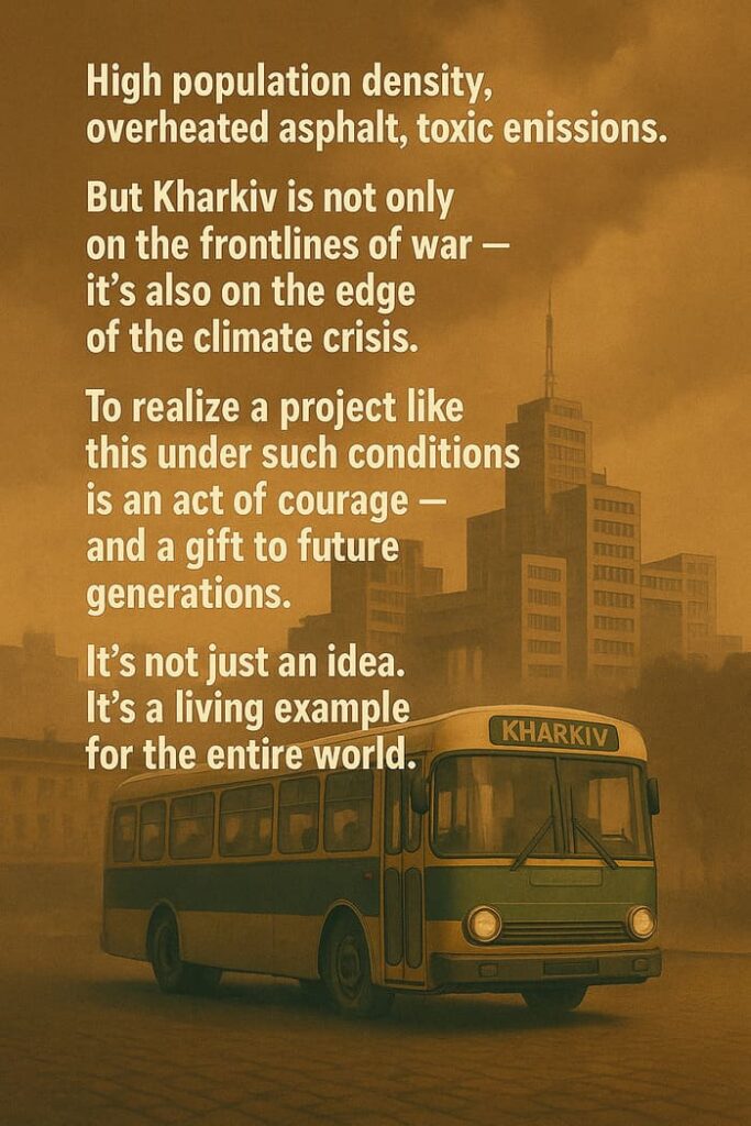 High population density, overheated asphalt, toxic emissions.But Kharkiv is not only on the frontlines of war —it’s also on the edge of the climate crisis.To realize a project like this under such conditions is an act of courage —and a gift to future generations.It’s not just an idea. It’s a living example for the entire world.