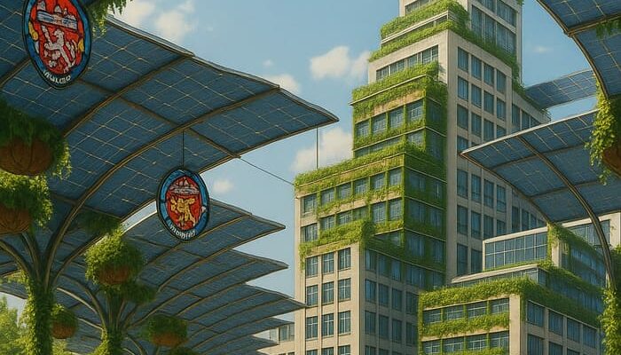 • on rooftops, public squares, parking lots, and transit stops.Beneath them — green zones, vertical gardens, and moisture-retaining plants.This isn’t just energy.This is urban climate reversal — replacing heat traps with climate-active surfaces,and shifting from fossil energy to regenerative fuel ecosystems.The glass in these panels is not passive.It actively cools the air — both during manufacturing and use. Beneath these canopies: