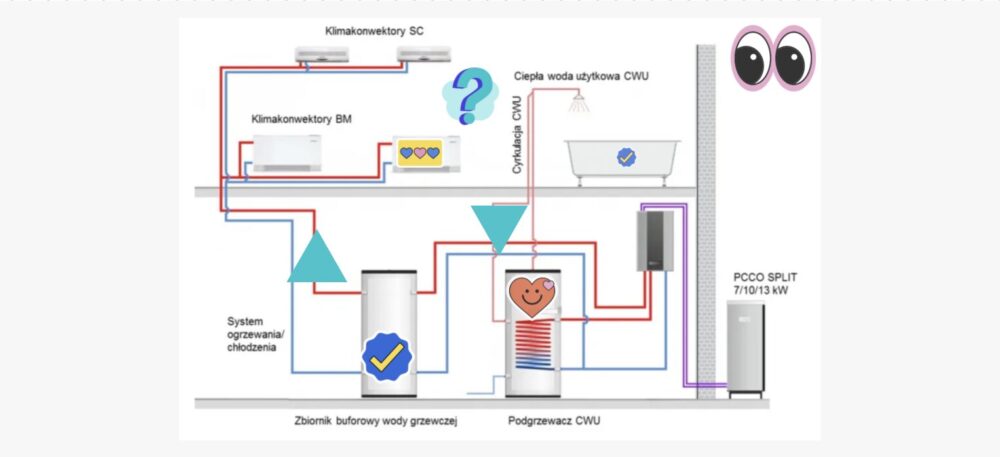 Jeśli dodatkowo jako źródło ciepła używamy pompy cieplnej, niskotemperaturowe grzejniki również nie będą w stanie zapewnić szybkiego przejścia, ponieważ niska temperatura czynnika grzewczego w nich nie generuje dużego konwekcyjnego ogrzewania powietrza w pomieszczeniu, co obniża prędkość przejścia między trybami.