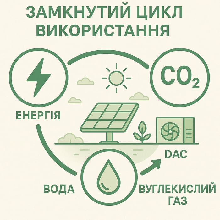 Створити замкнений цикл використання енергії, вуглекислого газу та води