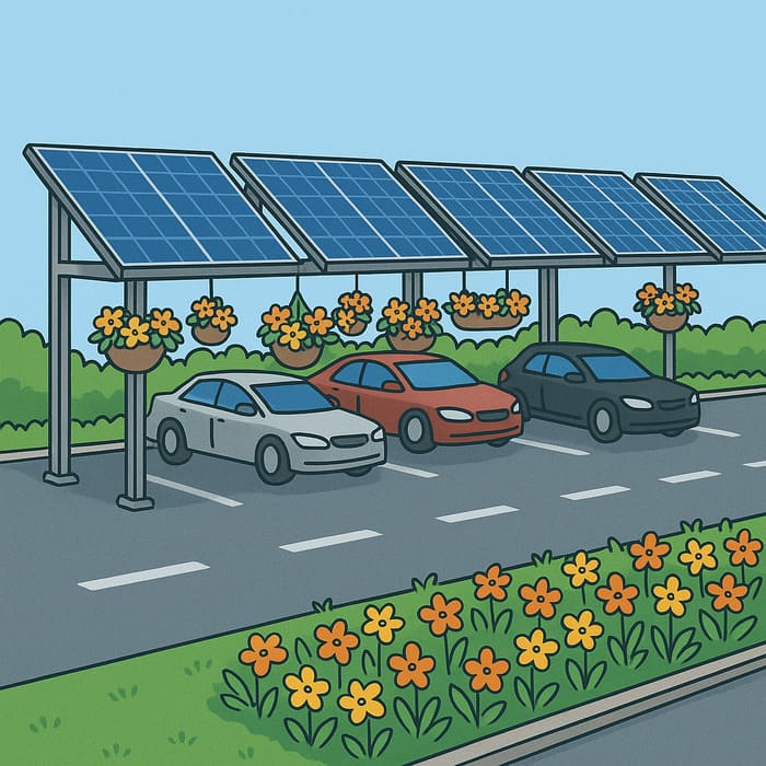 - Під сонячними панелями створюються озеленені зони, які поглинають частину сонячної енергії та покращують мікроклімат.