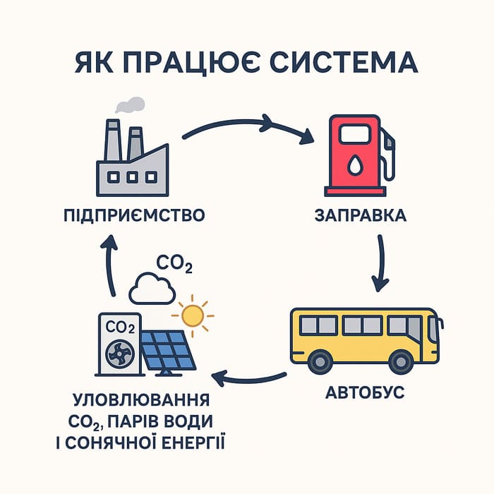 - Уловлювати CO₂ прямо на вулицях (біля доріг, ТЦ, зупинок).